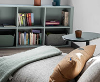 Erdvė pulsuojanti ir žaisminga: organiškų formų kilimas, apvalūs baldai ir šiltas oranžinis akcentas prikelia kitaip ramią, modernią erdvę. Tamsus virtuvės tonas ir šviesos takelio linijos suteikia ritmą ir tvarką.